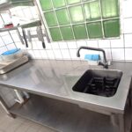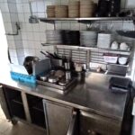 un piano de cuisson gaz quatre feux – un four électrique à vapeur JUSTA sur support inox – une friteuse électrique inox 9 litres AMATIS – un bain-marie électrique inox – un lot de bacs gastros inox avec couvercles – un lave-vaisselle à capot ZANUSSI avec tables de vidange et table de chef inox associées – un congélateur horizontal HISENSE – un congélateur vertical SAMSUNG – un batteur KITCHEMAID avec accessoires – une tour réfrigérée autonome trois portes AMATIS – une armoire réfrigérée autonome positive une porte inox TEFCOLD – une armoire réfrigérée autonome positive deux portes inox TEFCOLD – un surgélateur inox SMC – une table de chef inox à entretoise – un grand lave-main mural fémoral inox TOURNUS – une hotte aspirante inox trois grilles (extracteur en toiture) – tenant aux mur trois armatures inox formant étagères – sept rayonnages modulaires pvc deux, quatre, cinq et six niveaux – un rayonnage alimentaire alu à clayettes pvc – un rayonnage modulaire métal à six étagères métal – un rayonnage sur mesure métal à six et huit étagères et quatre tiroirs – deux poubelles pvc à pédale